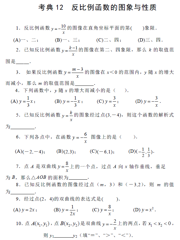 点击下载:2014中考数学冲刺高分必看典型题12 反比例函数的图象与性质