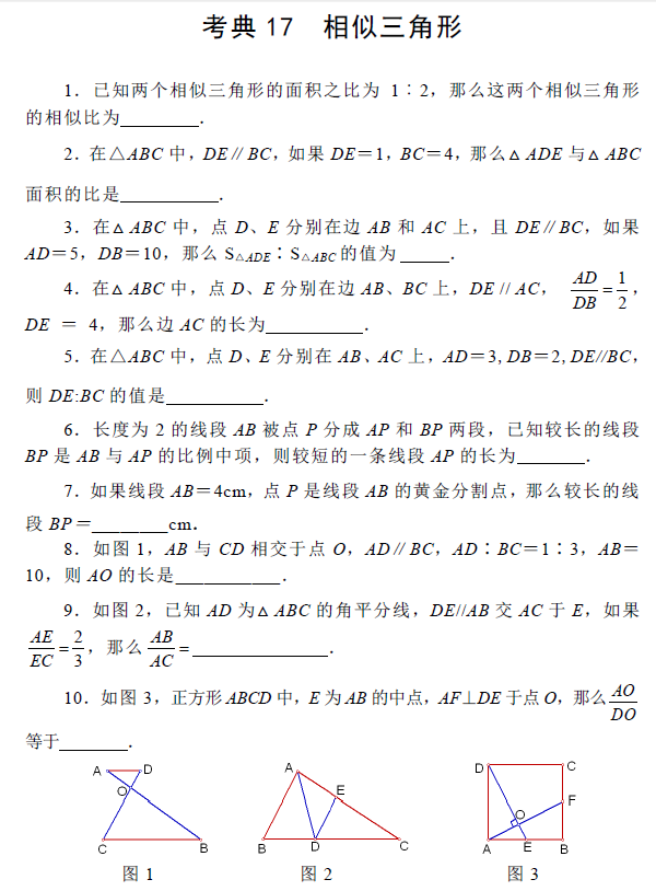 点击下载:2014中考数学冲刺高分必看典型题17 相似三角形