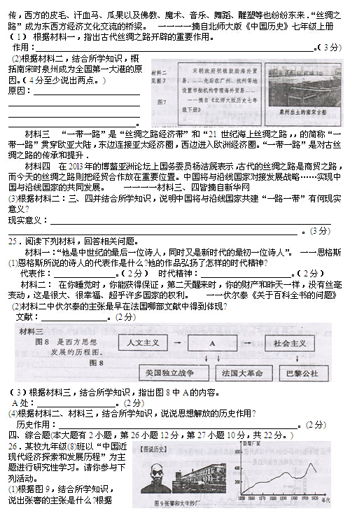 2015泉州中考历史试题公布(图片版)(3)