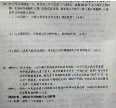2015铜仁中考思想品德试题公布(图片版)(4)