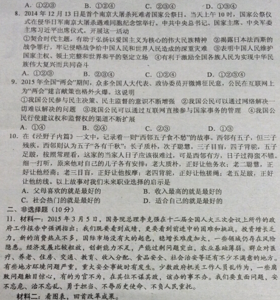 2015孝感中考思想品德试题答案公布(图片版)(2)