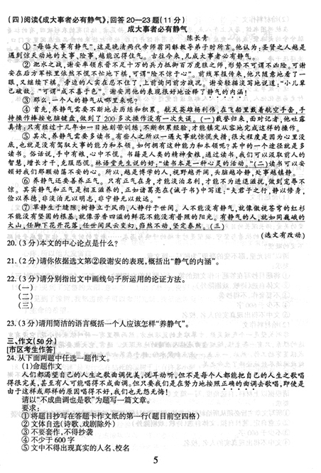 2015哈尔滨中考语文试题公布(图片版)(5)