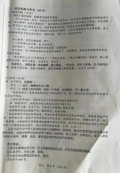 2015长春中考语文试题公布(图片版)(6)