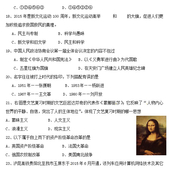 2015铜仁中考历史试题公布(图片版)(2)