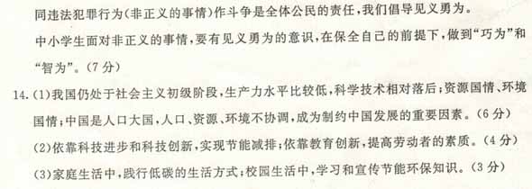 2015年包头中考思想品德试题答案公布(图片版)(2)