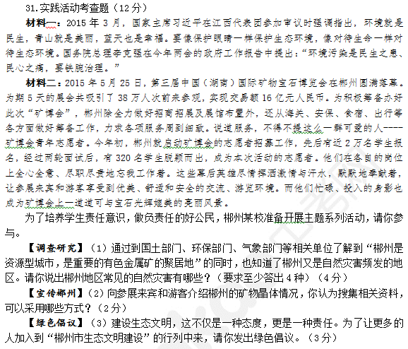 2015年郴州中考思想品德试题公布(图片版)(10)