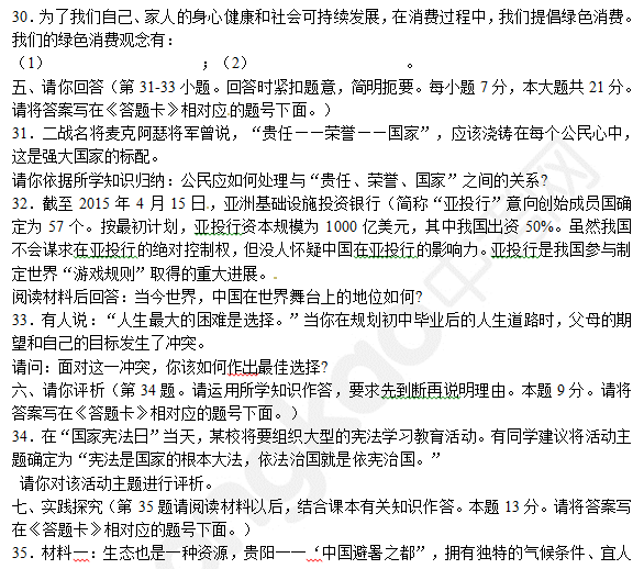 2015年贵阳中考思想品德试题公布(图片版)(4)