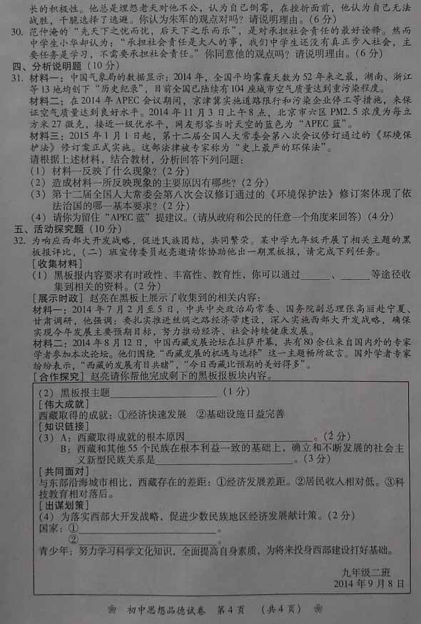 2015年衡阳中考思想品德试题公布(图片版)(4)