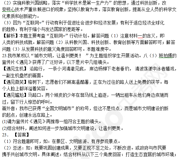 2015年温州市中考思想品德试题答案公布(图片版)(6)