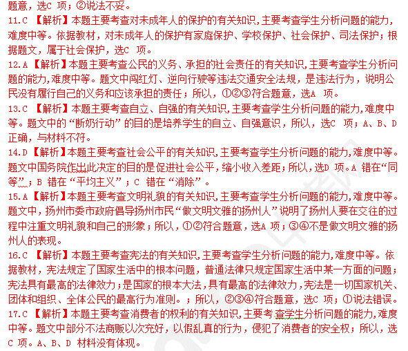 2015年扬州市中考思想品德试题答案公布(图片版)(2)
