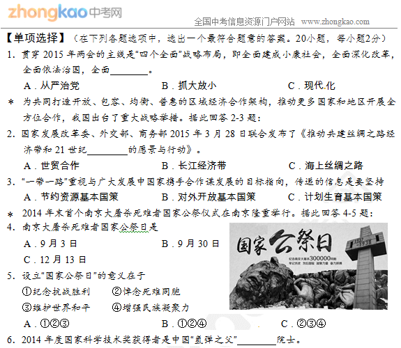 您现在的位置:中考 > 初中资源库 > 中考真题 > 中考政治真题 > 正文