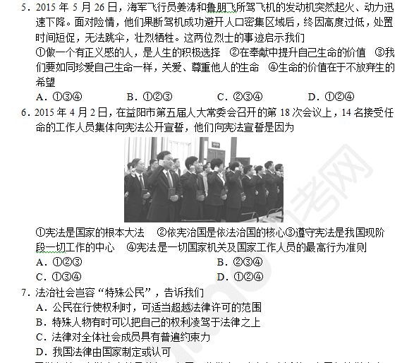 2015年益阳市中考思想品德试题公布(图片版)(2)
