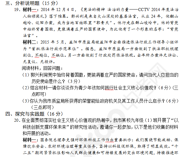 2015年益阳市中考思想品德试题公布(图片版)(6)