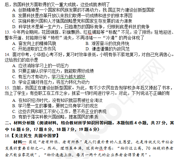 您现在的位置:中考 > 初中资源库 > 中考真题 > 中考政治真题 > 正文