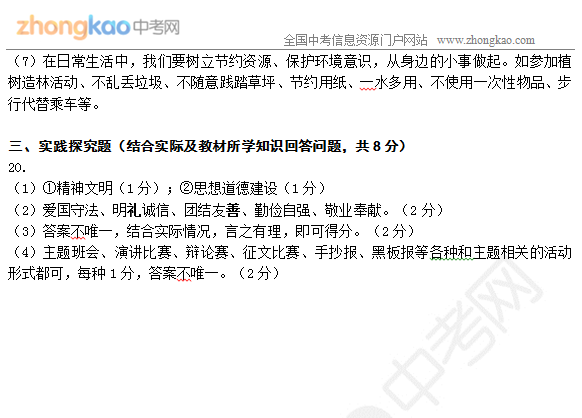 2015年营口市中考思想品德试题答案公布(图片版)(3)