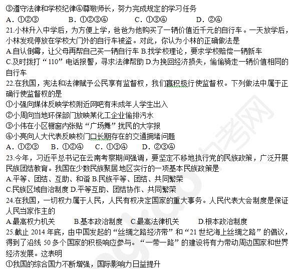 2015年云南省中考思想品德试题公布(图片版)(5)