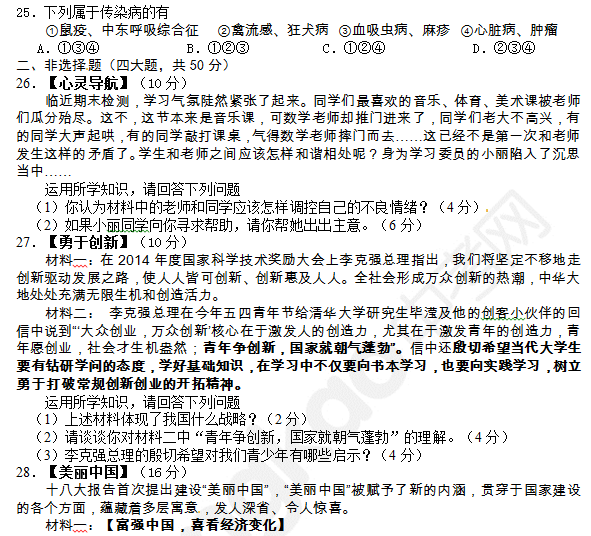 2015年张家界市中考思想品德试题公布(图片版)(5)