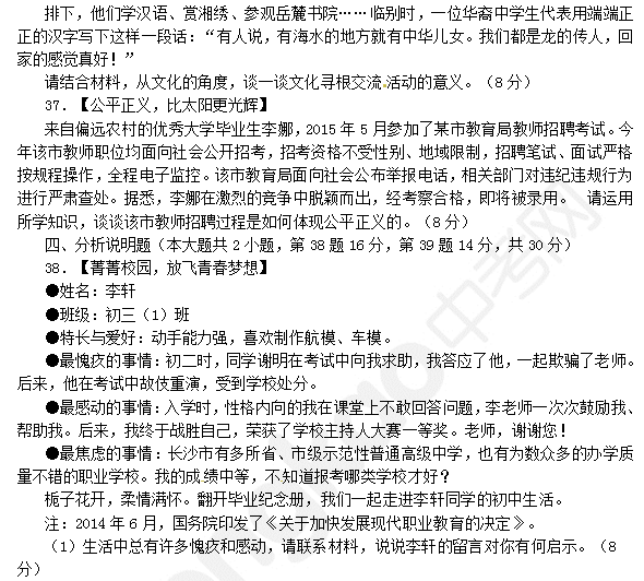 2015年长沙市中考思想品德试题公布(图片版)(4)