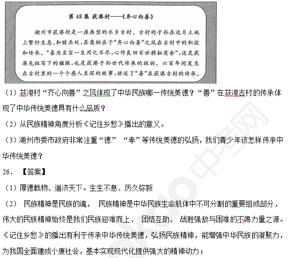2015年湖州市中考思想品德试题答案公布(图片版)(11)