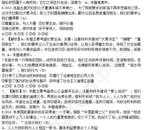 2015年丽水市中考思想品德试题答案公布(图片版)(3)