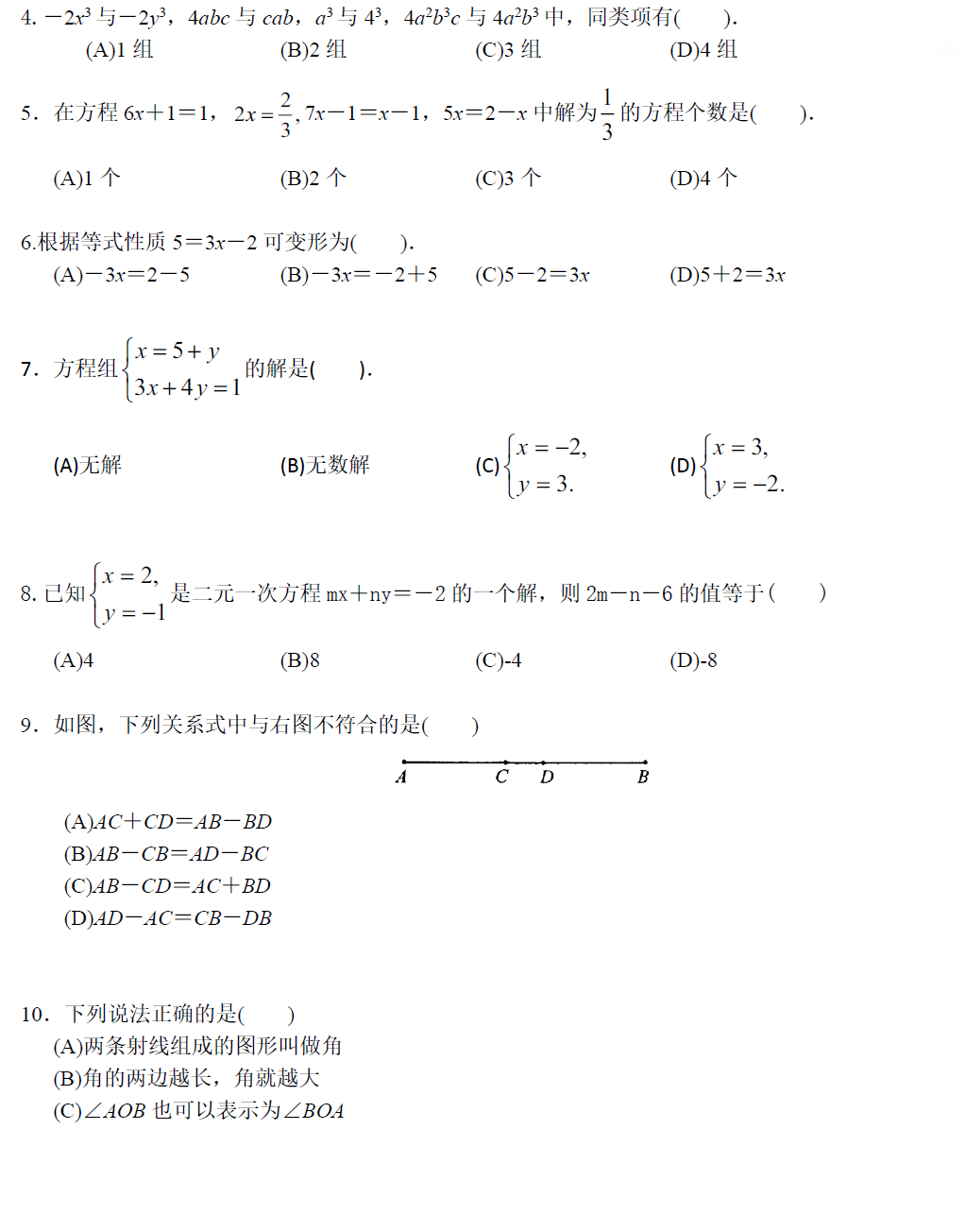 数学初一预科测试(5)