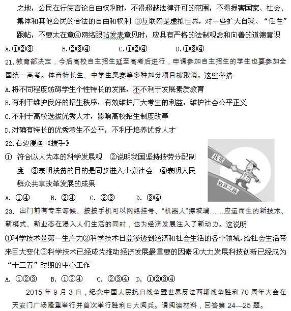 2016年山东滨州中考政治真题(4)