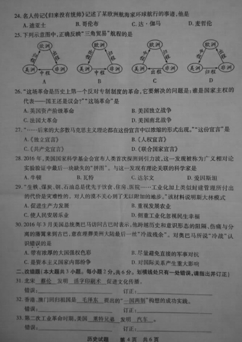 2016年福建厦门中考历史试题(4)