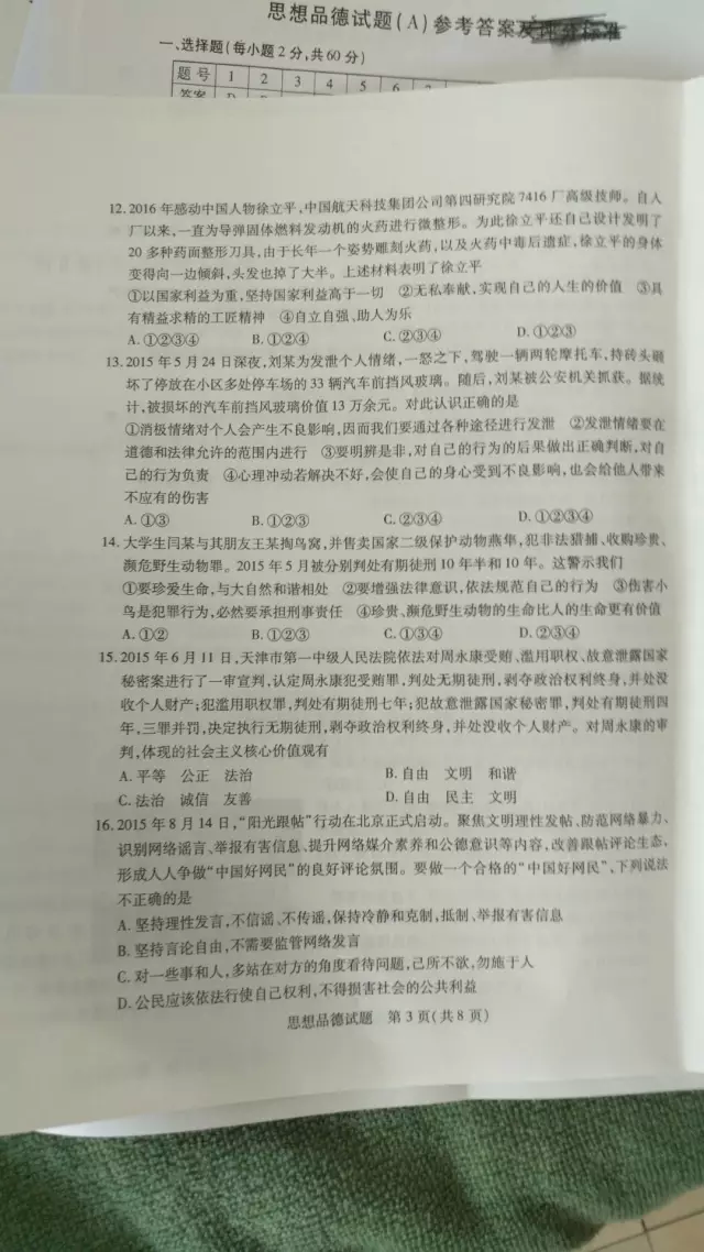 2016年山东泰安中考思想品德试题(图片版)(3)