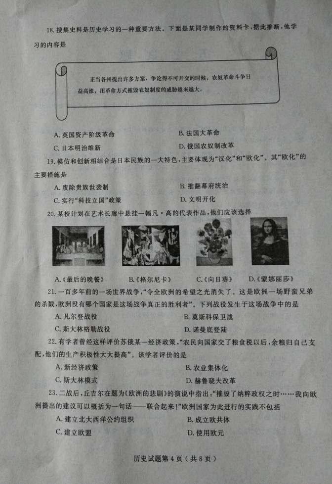 2016年山东烟台中考历史试题(图片版)(4)