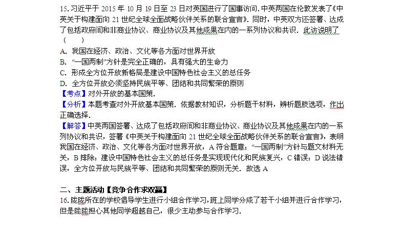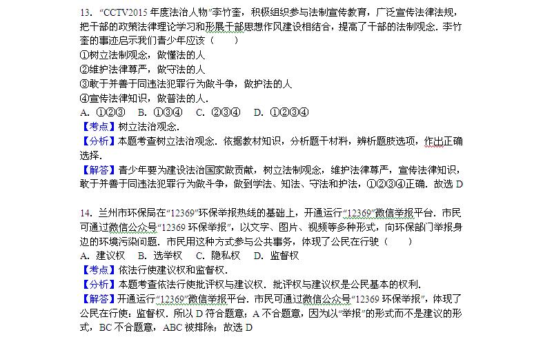 2016年甘肃张掖中考思想品德试题答案(图片版)(5)