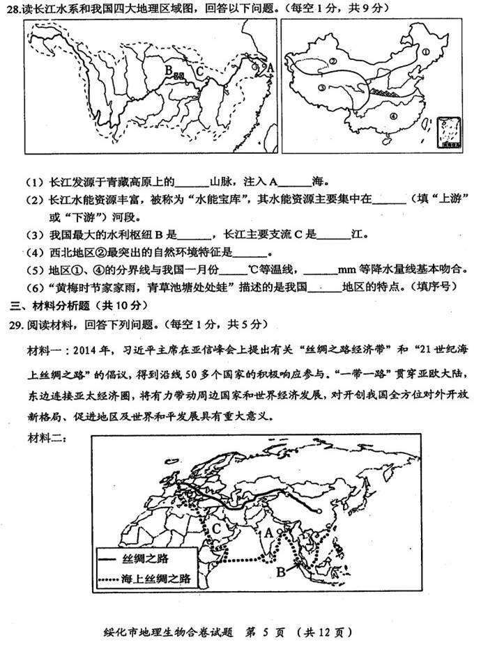 2016年黑龙江绥化中考地理试题(图片版)(5)