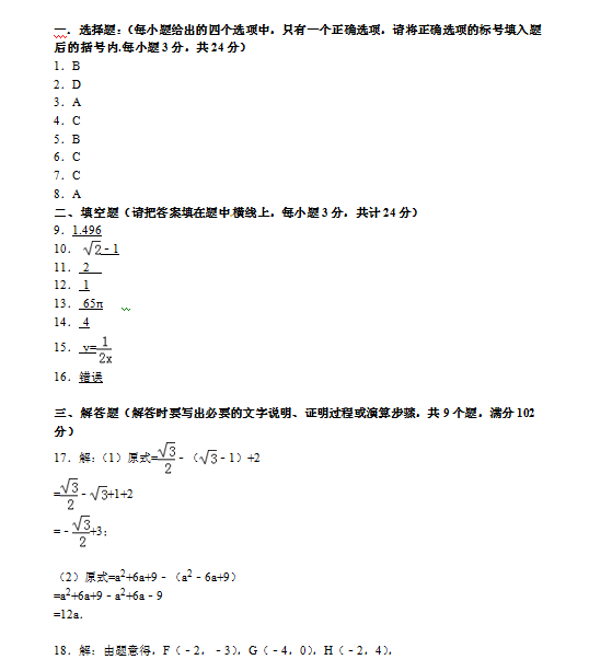 2013年内蒙古赤峰中考数学试题答案(图片版)