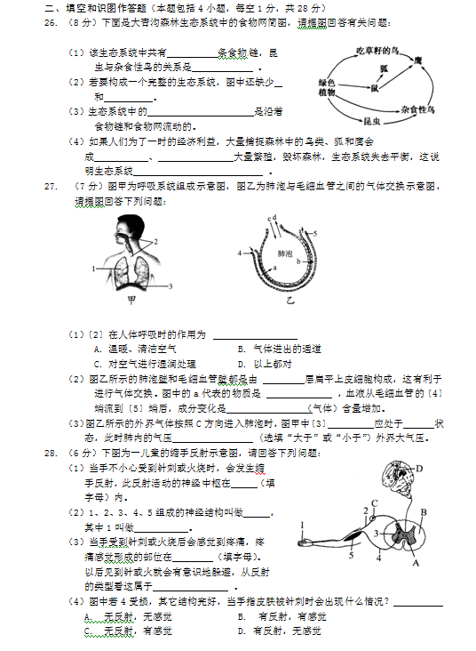 初中期末试题