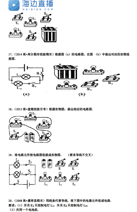 初三物理电路与电路图单元测试题(5)