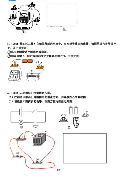 初三物理电路图与实物图画图题专项训练(二)(2)