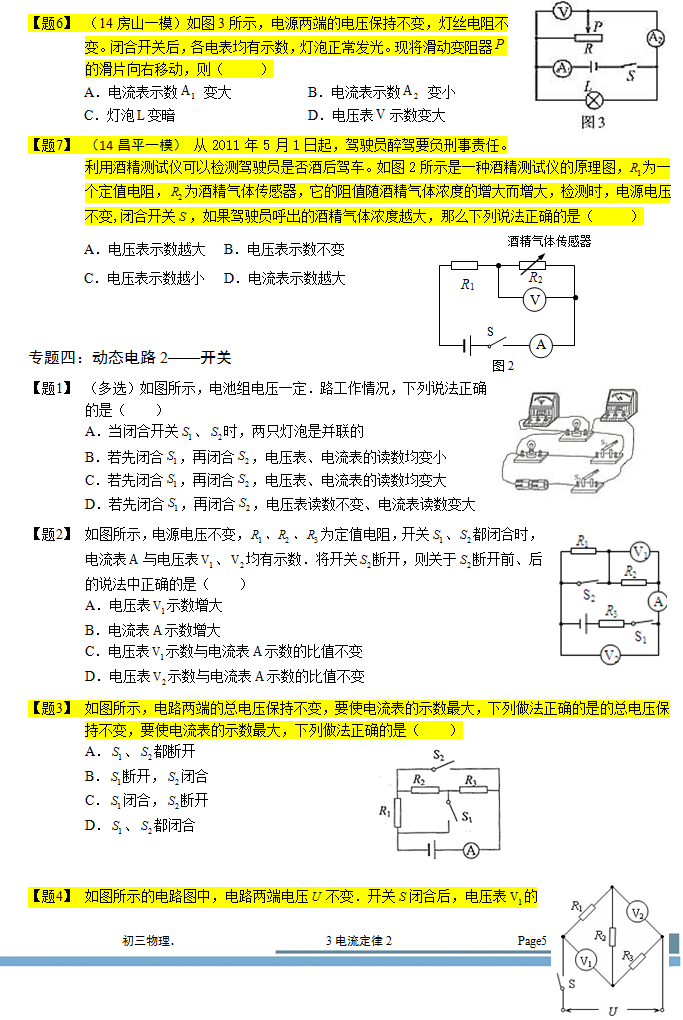 中考物理考点练习题集锦:欧姆定律的应用(4)