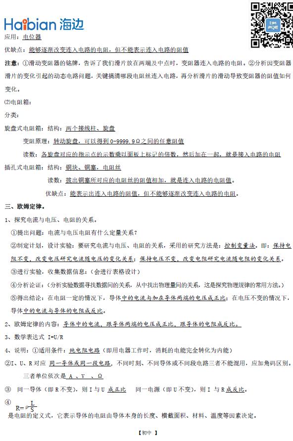 初中物理总复习:第六章《欧姆定律》复习提纲(4)
