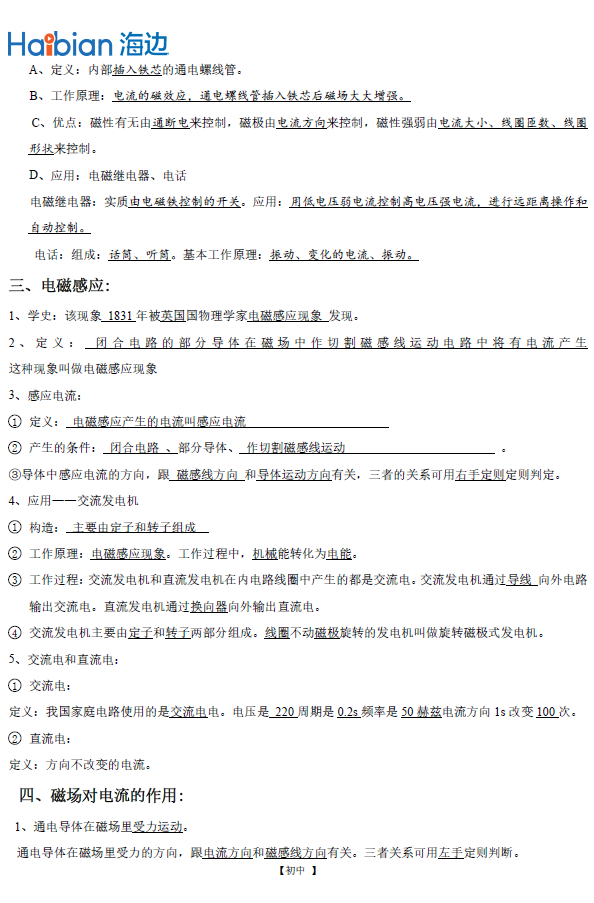 初中物理总复习:第八章《电与磁》复习提纲(4)