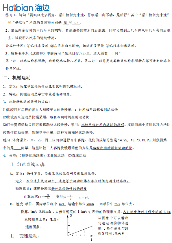 初中物理总复习:第十一章《运动和力》复习提纲(2)