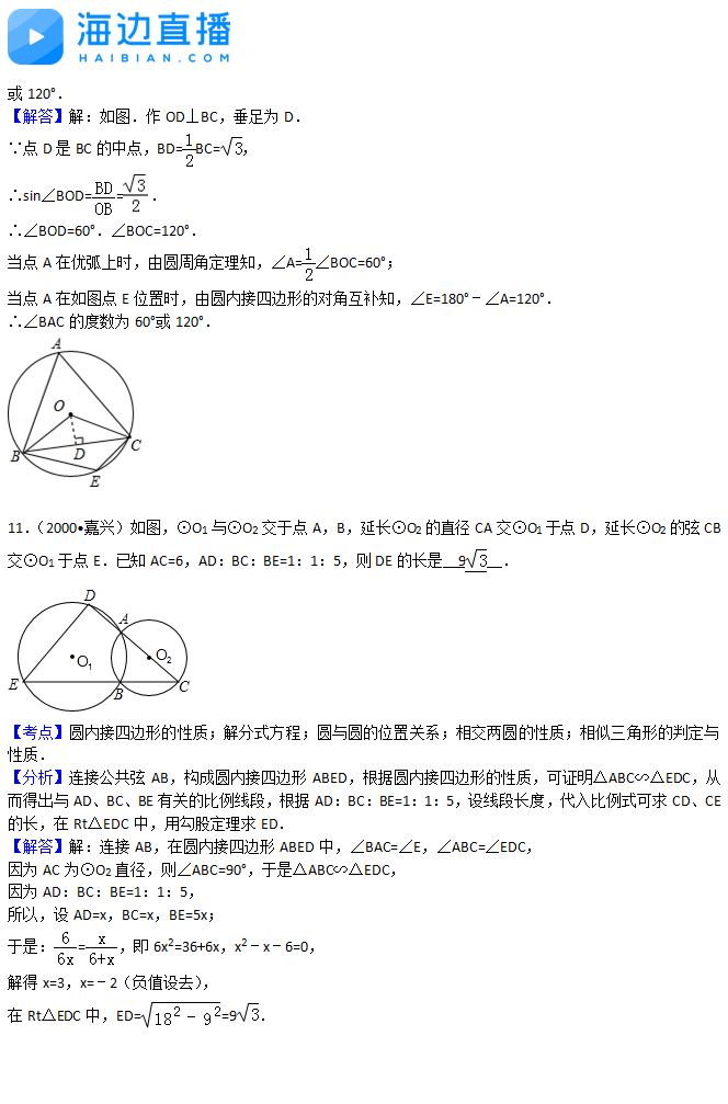 2017中考数学复习:圆的部份易错真题精练解析(一)(6)
