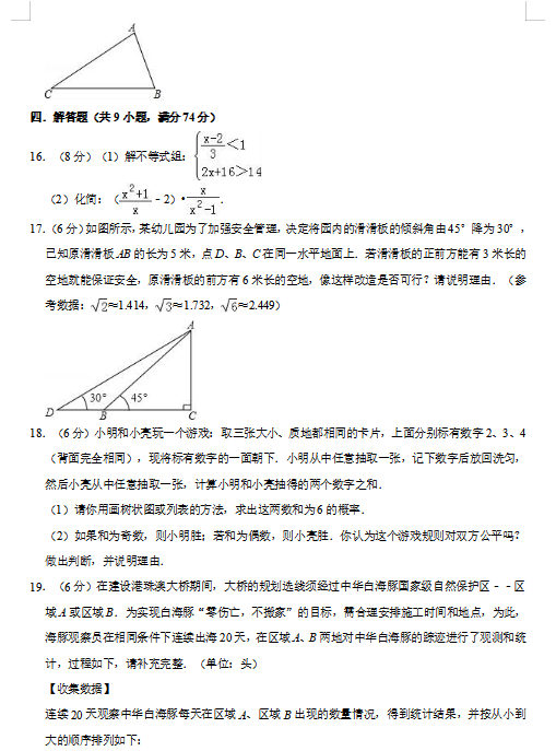2019山东青岛即墨七级中中考数学二模卷(图片版)(5)