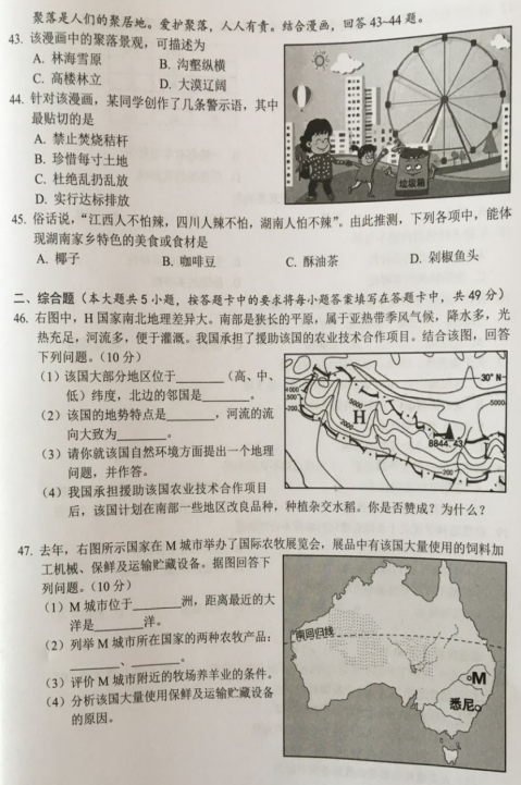 2019年湖南岳阳中考地理真题来了,具体内容如下所示: