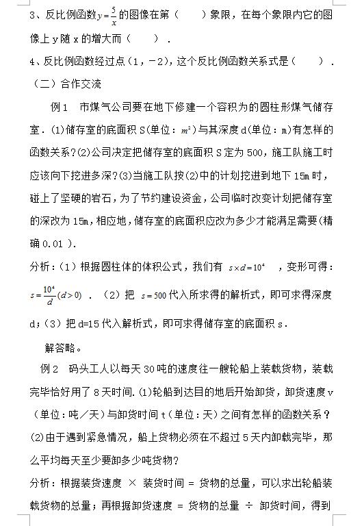 人教版九下数学26.2反比例函数在实际中的应用教案(图片版)(2)