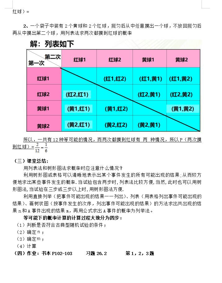 沪科版九下数学26.2等可能情形下的概率计算教案(图片版)(3)
