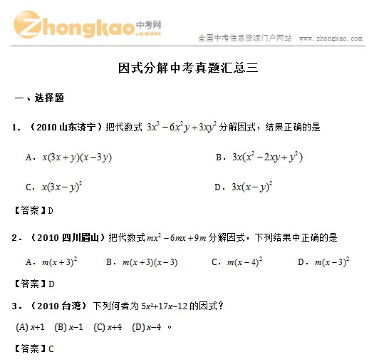 中考真题