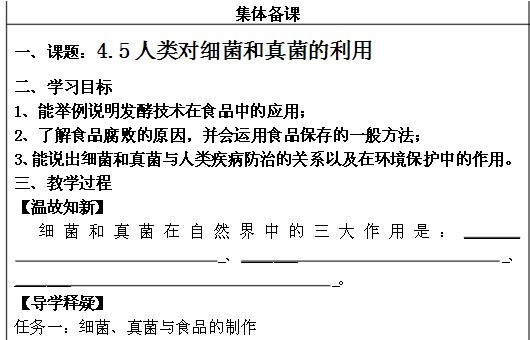教案下载地址:第五单元第四章:人类对细菌和真菌的利用