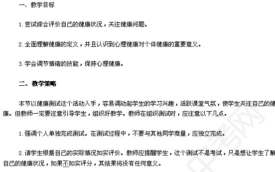 教案下载地址:第八单元第三章:评价自己的健康状况