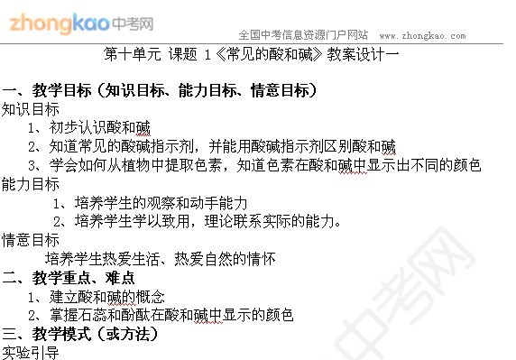 教案下载地址:第十单元第一课题:《常见的酸和碱、》