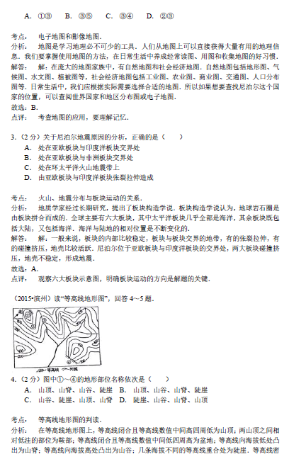 2015山东省各市中考地理真题及答案汇总