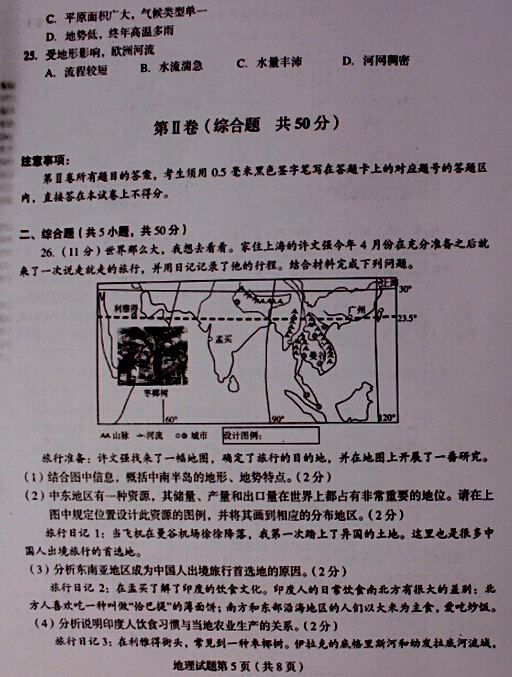 2015莱芜中考地理试题公布(图片版)(5)